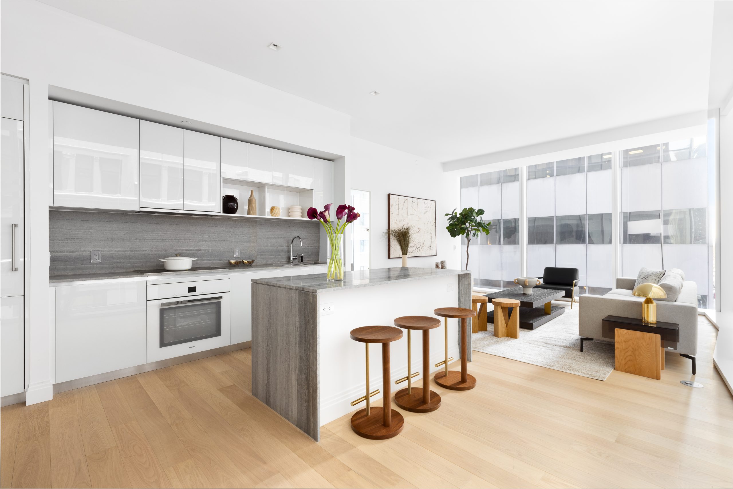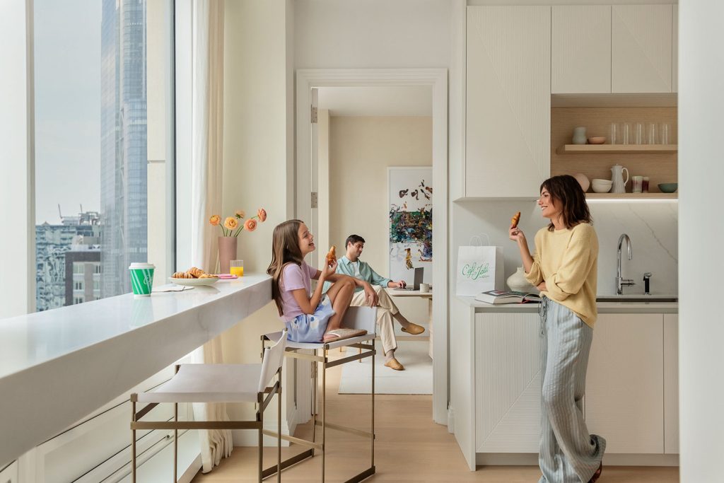 At One Wall Street, everyday living feels both effortless and considered. Light-filled, open-plan residences offer the ease of contemporary design within the graceful framework of a historic landmark. High ceilings, timeless details, and thoughtful layouts create a sense of calm amid the city’s motion—while select homes open to private terraces with views that stretch from skyline to harbor.