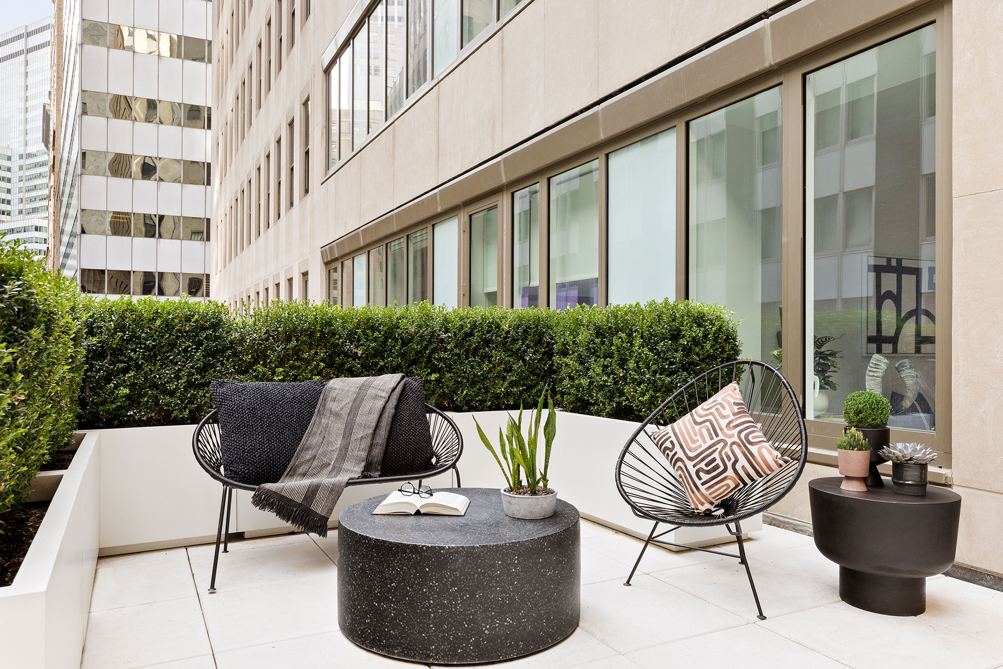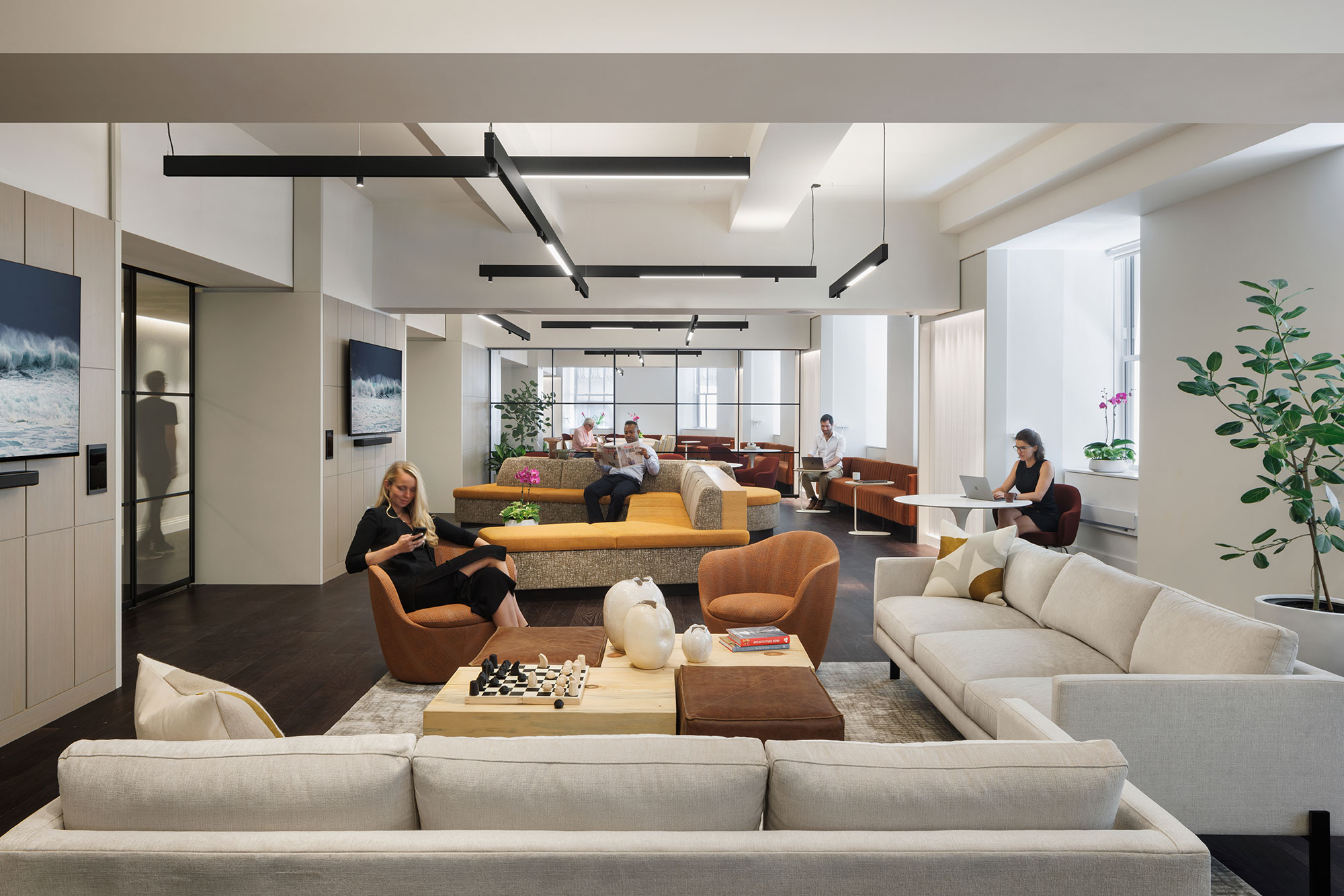 Forget the subway. Forget taxis, too. One Works is a gorgeously appointed set of work spaces designed by TenBerke (previously Deborah Berke Partners), and made exclusively for One Wall Street residents. Here, you can knuckle down in an individual space, huddle together with a small team in a conference room, or even record a podcast in the dedicated studio! All commutable by elevator, naturally.